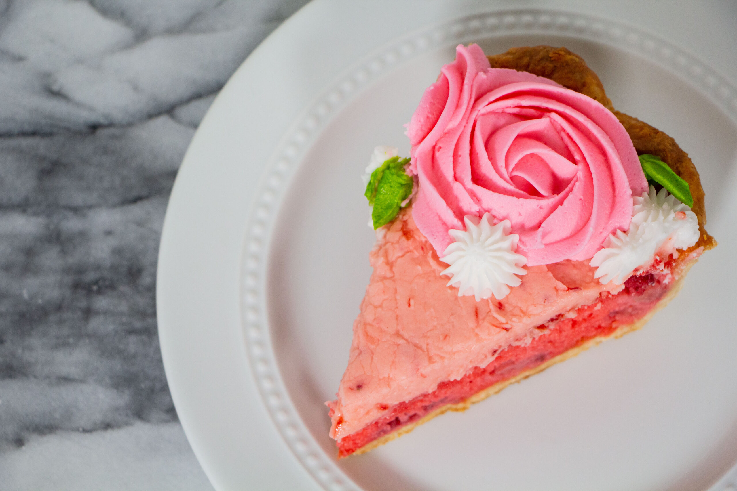 Our Strawberries and Cream Cake Pie is a delicious dessert that is perfect for any occasion. It’s made with fresh strawberries and a moist vanilla cake. The frosting is made with strawberries and a perfect amount of powdered sugar. It is then topped with beautiful buttercream rosettes.